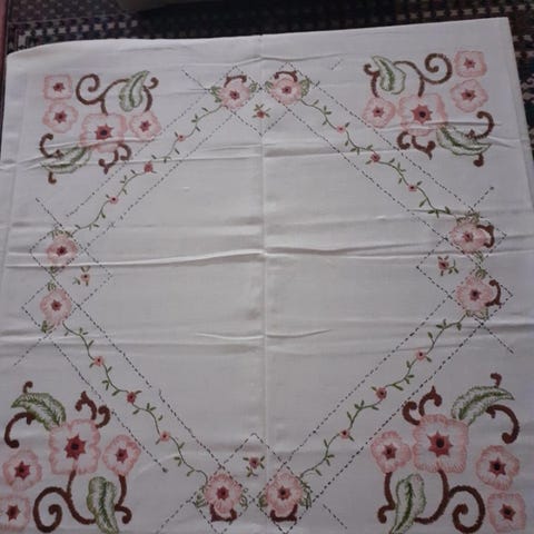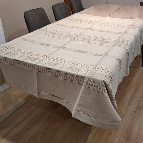 Virkatut kauniit pitsi osuudet, koko 146x240cm.pellavaa.