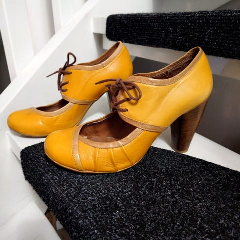 FLY:n elegantit vintage- korkokengät. Aitoa nahkaa. Valmistettu Portugaliassa. Näyttävät kauniilta jalassa ja tuovat mieleen 1930-40-luvun tunnelmaa. Pohja on vahvistettu Vibram-kumilla. Kauniit nauhat edessä. Täydelliset arkikäyttöön keväällä, kesällä ja syksyllä, sekä vintage-tyylisiin juhliin. Koko 39, korko noin 3 cm. Nouto. Maksutapa käteinen.