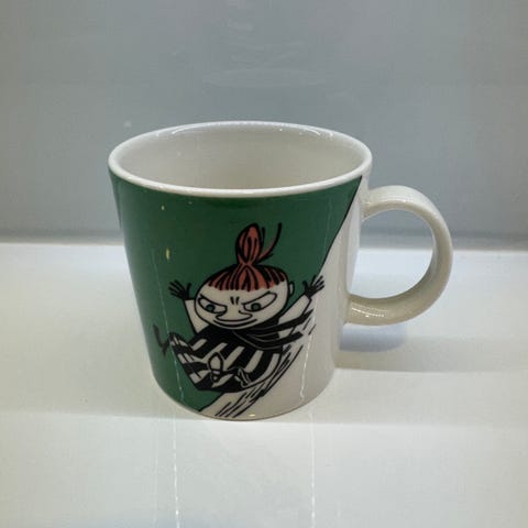 Erittäin siistikuntoinen tuotannosta poistunut (1999-2007, 2011) Arabian muumimuki Pikku Myy liukumäessä.