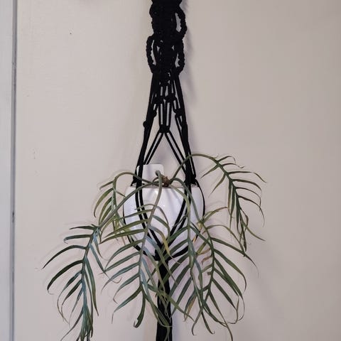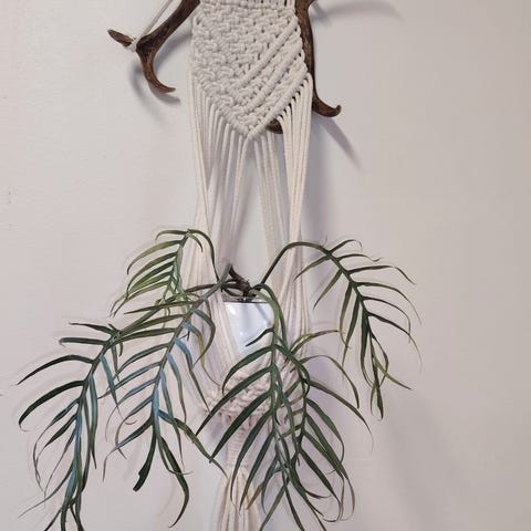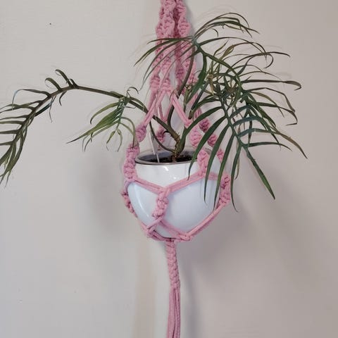 Lapset myy kauniita makramee amppeleita 15€/kpl.