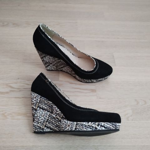Myydään valkoiset kiilakorko avokkaat. Materiaali aitoa nahkaa.