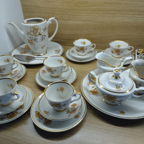 Arabia Myrna kahvikupit aluslautasineen/kakkulautanen.6 kpl.Olleet pari kertaa käytössä.