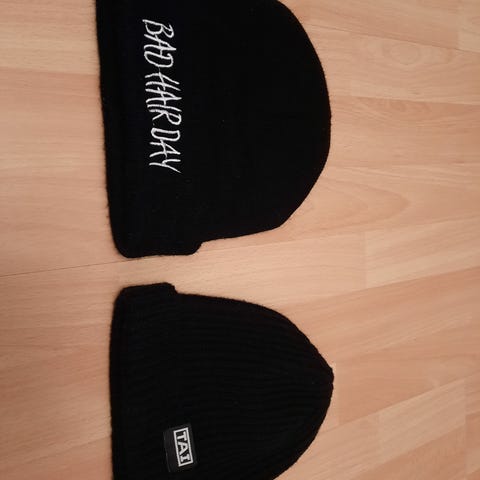 Hyväkuntoinen punainen ja vaaleanpunainen myssy tupsulla, noin koko 44 tai 46.