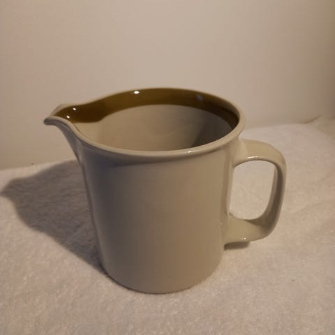 Arabian Oliivi Maitokannu,Ulla Procope,Korkeus 13 cm ja Pituus/syvyys 15 cm, väri valkoinen/Oliivin vihreä