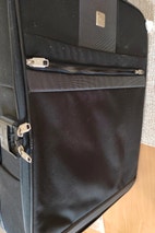 Hienokuntoinen, siisti matkalaukku. Musta, kangas/muovi 2 pyörää, vetokahva, lukko, paino n. 6 kg, iso tasku etuosassa ja sisällä.