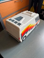 Lasten avattava leikkiauto kantokahvalla ja renkailla.