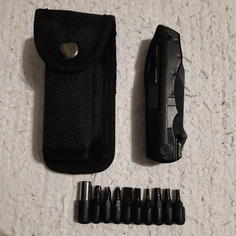 Ruostumatonta terästä oleva monitoimityökalu.