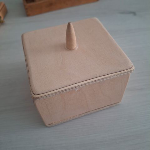 Tässä pikkuinen koru-, askartelu tarvike-, pienet osat lokerikko - matala, joten menee myös moneen rasiaan sisään, mutta kaunis esillä - voit maalata haluamaksesi. Vaneripuuta.