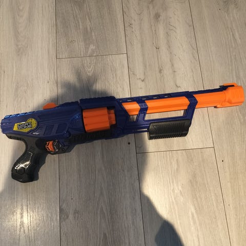 Myydään kuvien mukainen nerf n-strike elite stongarm lelu pyssy. Käytön jälkiä löytyy vähän sieltä täältä, mutta on muuten erittäin hyvässä kunnossa. HUOM! hintaan ei kuulu ammuksia.