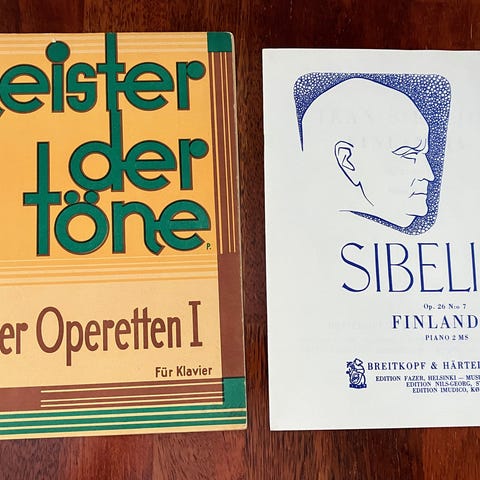Myydään kaksi Sibeliuksen nuottikirjaa: Finlandia ja Romanze (kuuluu monta kappaletta, kts. kuvat)