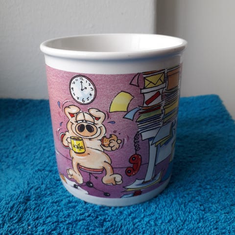Kuvanmukainen ehjä, siisti ja käyttämätön muki verokarhun tassut -tunnuksin.