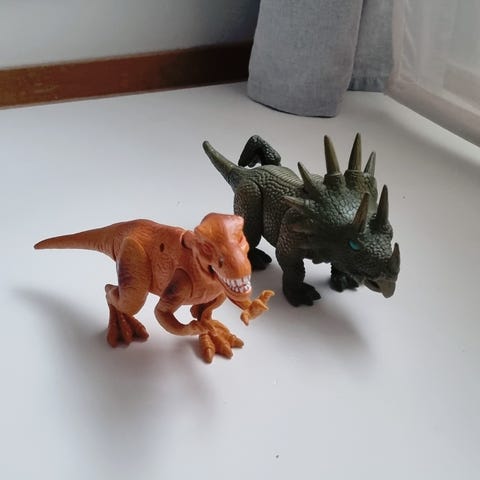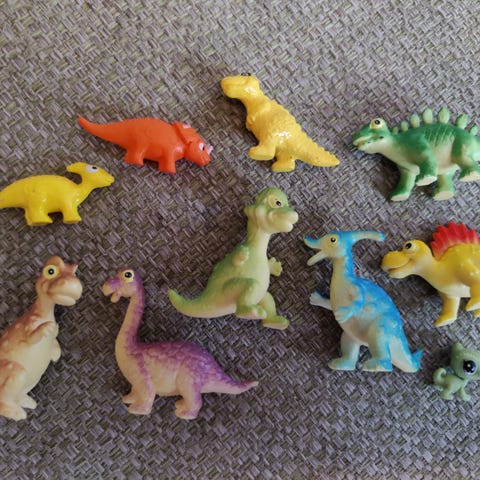 Äiti ja poikanen, laadukkaat uudenveroiset dinosaurukset. Äidin koot: pituus n. 26 cm, korkeus n. 11 cm
