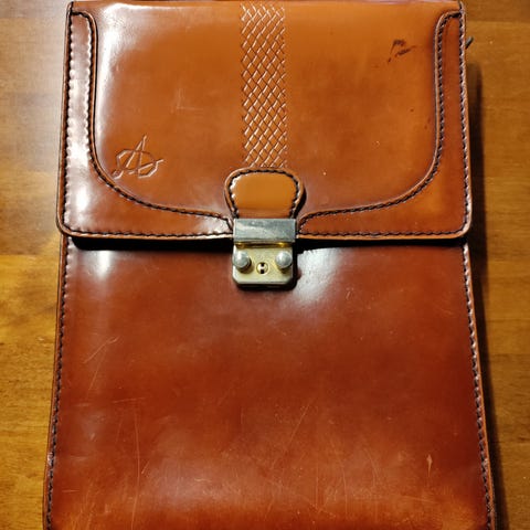Vintage musta messenger nahkalaukku soljilla