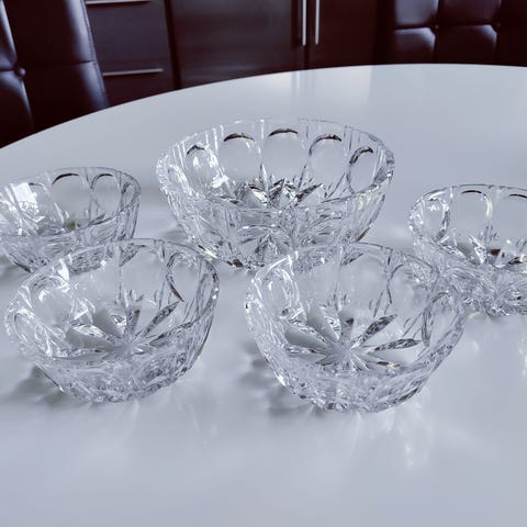 Kristallikulho, lev. 8 cm, pituus 24 cm.