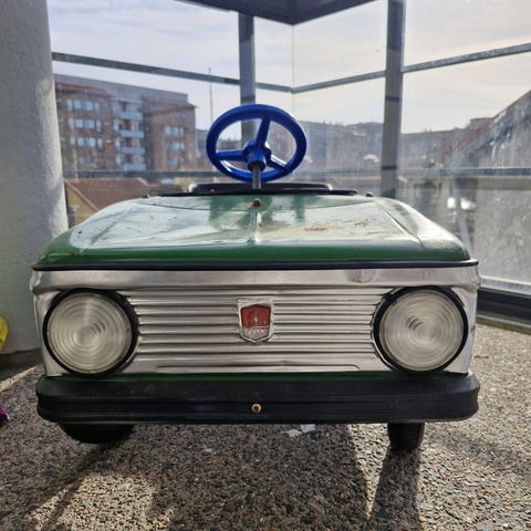 Myydään vanha Moskvitsh-polkuauto 60-luvulta. Polkimet puuttuu, alkuperäiset renkaat mukaan.