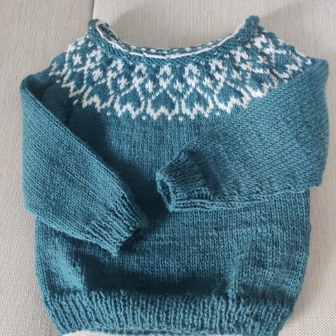 Strömsö - puseeo, mitat kai-kai 29cm, kai-hihansuu 28,5cm, olka-helma 40cm. Lanka on konepestävää (40 astetta) Janne-lankaa, 85% villaa, 15% polyamidia. Käsin neulottu, käyttämätön. Myynnissä myös toinen Strömsö-neule, hiukan isompi.