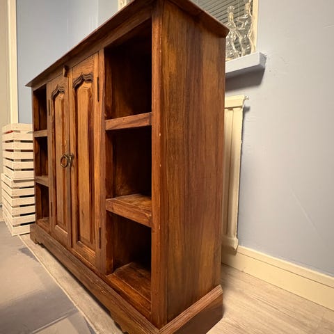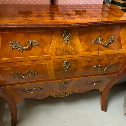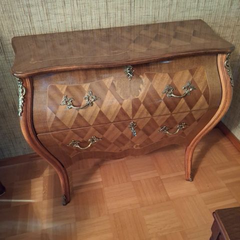Myydä hyväkuntoinen mahalipasto. Muutamasta kohdasta lakkaus hieman huonossa kunnossa. Etureunan mustassa osassa muutama kolhu. Laatikot sisältä siistit.