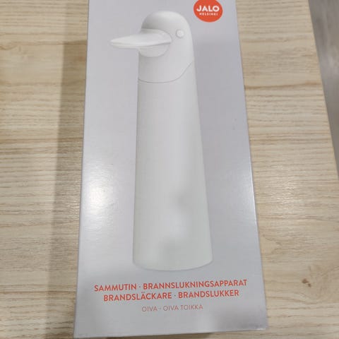 "Jalo Helsinki on lanseerannut Suomen itsenäisyyden 100-vuotisjuhlan kunniaksi Oiva Toikan suunnitteleman Phoenix-ensisammuttimen. Linjakas, myyttistä feenikslintua kuvaava sammutin on mallinnettu 3D-tekniikalla Toikan käsin muovaamasta veistoksesta. Phoenix on paitsi keittiön sympaattinen sisustusesine, myös helppokäyttöinen sammutusväline: linnun pää ja sinettikorkki irrotetaan ja sammutinliuosta suihkutetaan kuin mistä tahansa spray-pullosta. Erityisesti öljypalojen sammuttamiseen suunniteltu Phoenix sammuttaa jopa 25 litraa palavaa rasvaa, mutta soveltuu myös esimerkiksi alkavien sähköpalojen tukahduttamiseen.