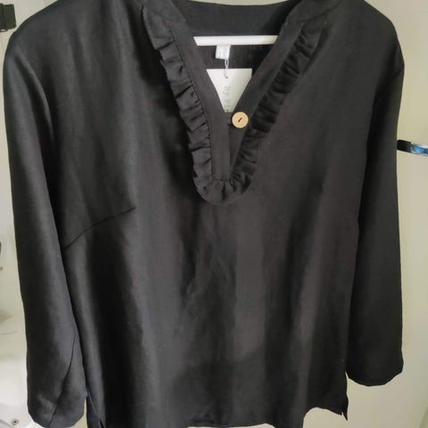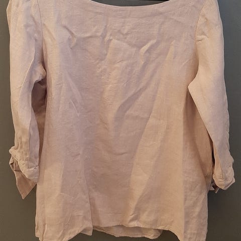 Upea pellavapusero jossa kankaassa kullan kimallusta ja osittain pitsiä. Ovh 89 e Tämä on upea. Käy juhlaan ja arkeen.