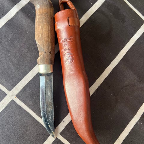 Musta rambo puukko tapella.