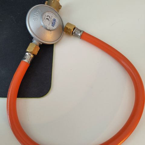 Matalapainesäädin 30mbar, 1m letku ja klemmarit. Letku EN559, takaiskuventtiili EN16129. (Uusien EU säädösten mukainen)