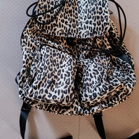 Vaaleanpunainen reppu, täysin ehjä, Mitat: kork. 34 cm lev. 30 cm.