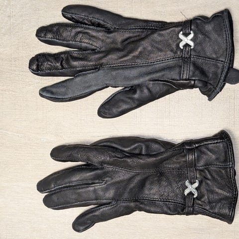 Myydään ehjät ja siistit mustat lasten nahkahanskat. Hanskat ovat aitoa nahkaa. Hanskoissa on pehmeät neulosresorit.