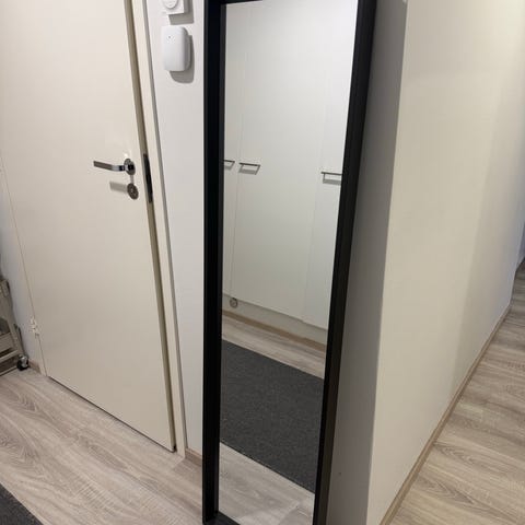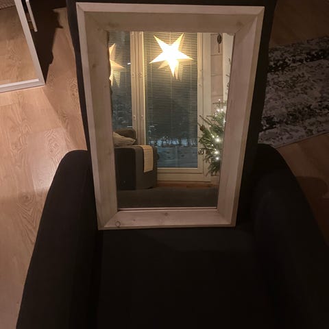 IKEA MALMA peili, koko 20x20 cm, valmistettu puusta. Peilissä on mustat kehykset ja se on tarkoitettu seinälle ripustettavaksi. Sopii sisustuselementiksi ja tilan visuaalisen laajentamisen tueksi.