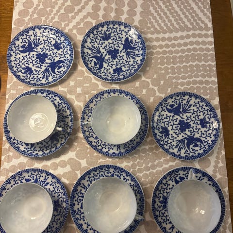 Hieno Tee astiasto, käyttämätön kuin uusi. Pesty käsin, teemaltaan kiinalais tyylinen. Siistit sisältä pieni, harmaa läiskä yhdessä kupissa. Muttei vaikuta käyttöön mitenkään,järkevä tinkimis vara. Maksu mobilepaylla