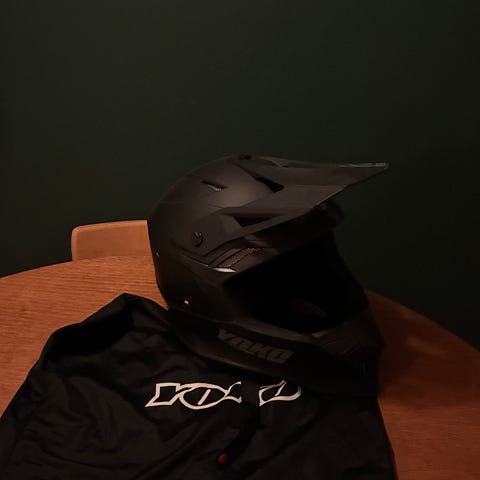 Yokon tyylikäs mattamusta crossikypärä ja pään koko 61-62 cm. XL.