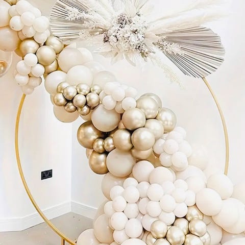 2 vaaleanpunaista pallopainoa ilmapalloille ja yksi hopeinen pyramidinmuotoinen.