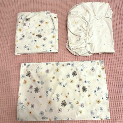 Sopii pieneen tyynyyn ja peittoon (pinnasänkyyn)