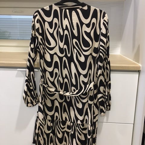 Lyhythihainen mekko, jossa kiva yksityiskohta selkäpuolella, postitus on myös mahdollista.