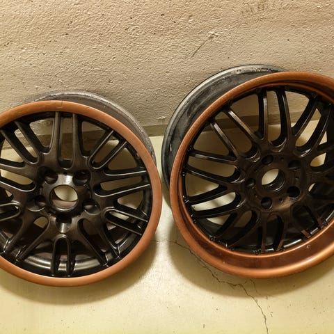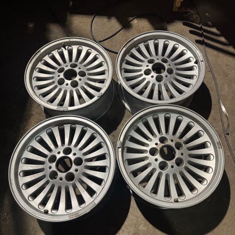 Siitä bmw e39 alkuperäiset vanteet kapseleilla. Pintaa hyvin mutta nastoja on lähtenyt.