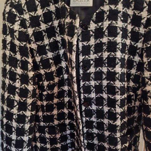 Käyttämätön saksalainen Basler hame. Tummanruskea, pienet valkoiset pilkut. Hameessa on leveähkö vyötärönauha ja kapeat vekit alkavat alempaa. Hameessa on vuori. Koko 36.