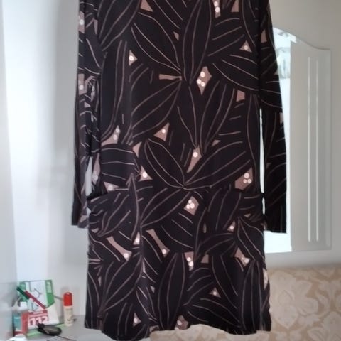 Marimekon Ellis Pisaroi tunika, reilua kokoa, kokolapun mukaan L, mutta menee kyllä XL koosta.