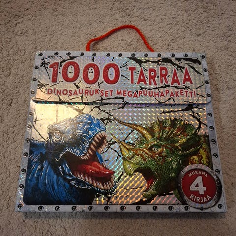 Uudenveroinen, upea kirja, jossa paljon osia (voi koota dinoja) ja lopussa hieno koottava näyttämö. Ihan jokaista taskua en ole katsonut, puuttuuko joku pikkuosa.