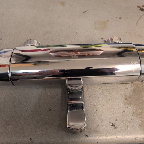 Termostaatti hanalla, tiivisteen vaihto lämmönsäätimeen varmaan paikallaan, kun sieltä välistä käsittääkseni tippa vettä silloin tällöin tulee. Suihkuletku mukaan halutessaan.