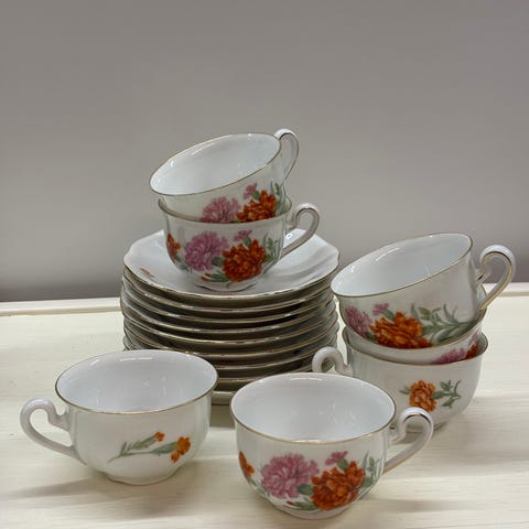 Tšekkoslovakialaisia kahvi/tee mukeja sekä lautasia