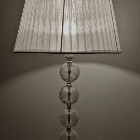 Valkoinen halogeenivalaisin,himmentimellä. Korkeus noin 2 m. Haku Malminniitystä.