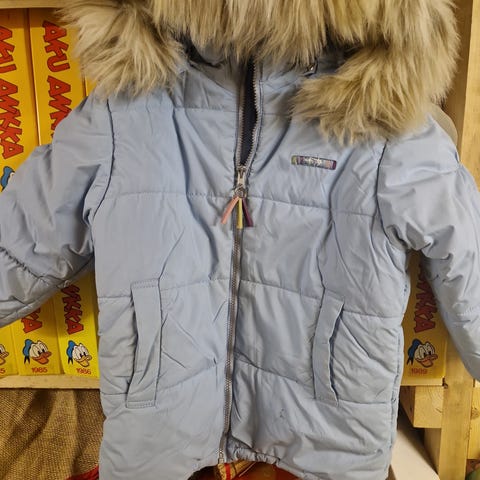 Talvitakki pojille. Täyte: untuvahöyhen (untuvatakki). Väri - sininen. Kiinnitys - vetoketju.