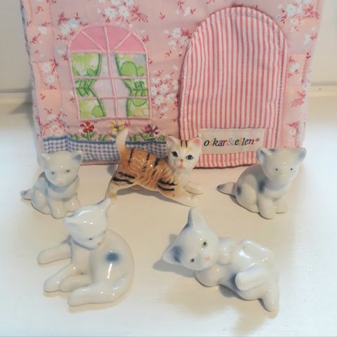 Posliiniset kissa-säilytyspurkit, ehjät. Kokonaispituus 44cm, leveys 20cm ja korkeus 16cm.