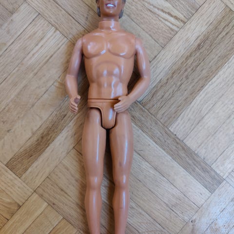 Mattel Ken nukke, vanhempi vaatteet tuhruiset Kenin niskassa lukee Mattel