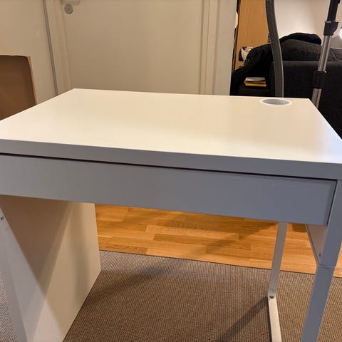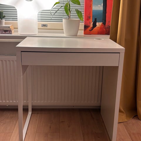 It was used for one year, in good condition - there are a couple of scratches, but they are not noticeable and not critical. It is very convenient for small rooms and has a convenient hole for wires.