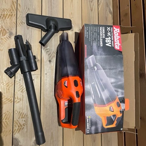 Pumppu toimii Robotan 18V akuilla tai Makitan LXT 18V akuilla. Pumpun erillisessä akkuyksikössä akku on suojattuna kannen alla. Pumppu liitetään virtajohdolla yksikköön kiinni.