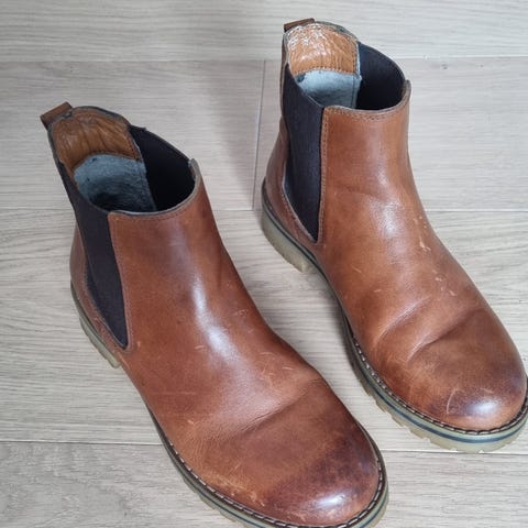 Tekomokkanahkaiset chelsea -nilkkurit. Ovat olleet todella vähäisellä käytöllä ja edelleen siistissä, moitteettomassa kunnossa