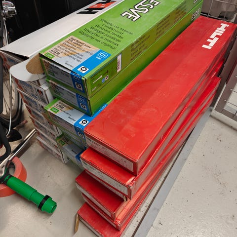 15.7 nauhaa eli joku 770 ruuvia, lisäksi muutama pitkä yksittäinen kipsiruuvi.