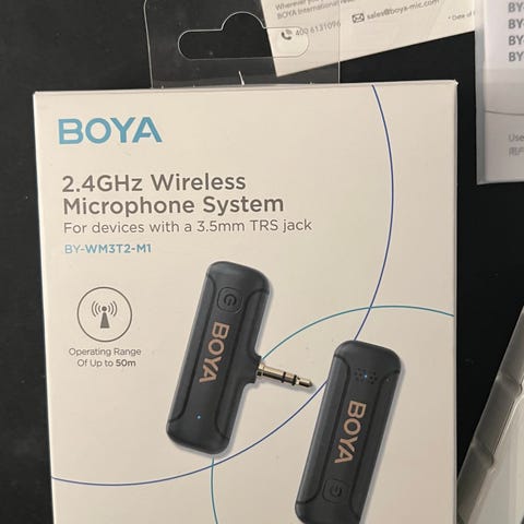 BOYA BY-WM4 PRO-K4 on 2,4 GHz: n langaton mikrofonijärjestelmä, joka on suunniteltu erityisesti Lightning iOS -laitteille. Siinä on kaksi lähetintä (TX4 Pro), pieni vastaanotin Lightning-liittimellä (BY-WM4 PRO RXD) ja kaksi monisuuntaista lavalierimikrofonia.