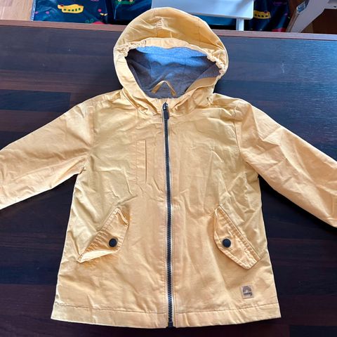 Kesään tai välikauteen ihanan hengittävä (ei kuitenkaan liian ohut) puuvillainen "farkku"takki koko 98. Hieman vahamainen pinta ja pitää jkv kosteutta! Ollut kauppa- ja matkustustakkina ym siistissä käytössä.