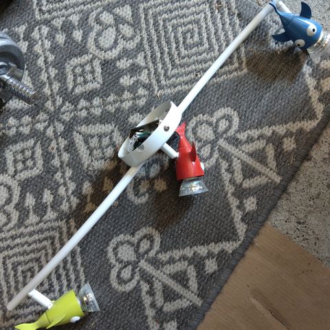 Akvaariovalaisin liikkuvat kalat, teema trooppiset kalat ,made in China . Joitain auringon valon tekemiä uria kirkkaassa muovissa kun sähköjohto ollut käärittynä laitteen ympäri. Tässä mallissa ei ole valotoimintoa erikseen eli kun valo on päällä kalat liikkuvat . Vain nouto!.